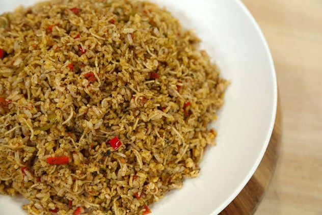 Pilav demlendikten sonra defne yaprağını çıkarın ve servis tabağına alın.