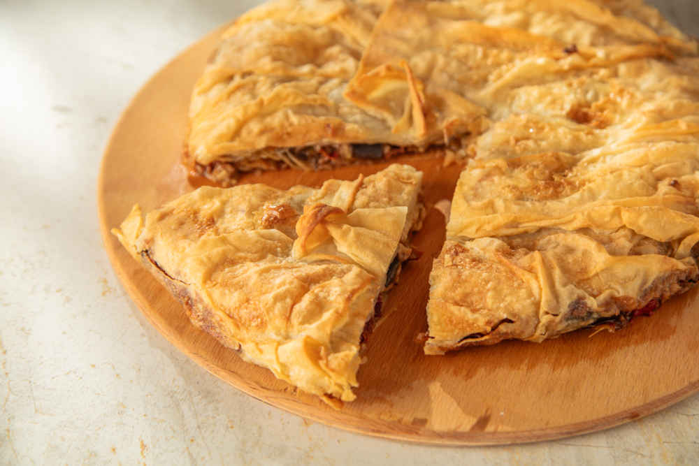 Bir çeyrek yufka daha koyun ve sıvı harç gezdirin.