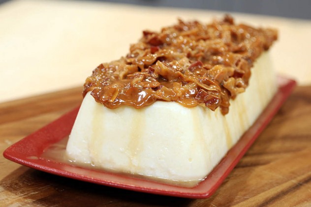Hazırladığınız irmikli pudingi bir servis tabağına ters çevirerek çıkartın. Hazırladığınız karamelize elmalı sosu pudingin üzerine döktükten sonra dilimleyerek servis edin.