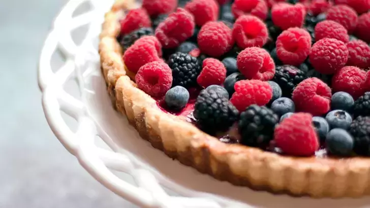 Hazırlanan hamur iki eşit parçaya ayrılıyor. Hamurun bir kısmı yağlanmış 25 santimetrelik tart kalıbına yerleştirilerek taban oluşturuluyor. Süzülen meyveler hafifçe una bulandıktan sonra hamurun üzerine diziliyor. Kalan hamur açılarak meyvelerin üzerine kapatılıyor ve kenarları bastırılarak sabitleniyor.