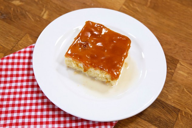 Şerbeti tamamen çektiğinde üzerine karamel dökerek servis edin.
