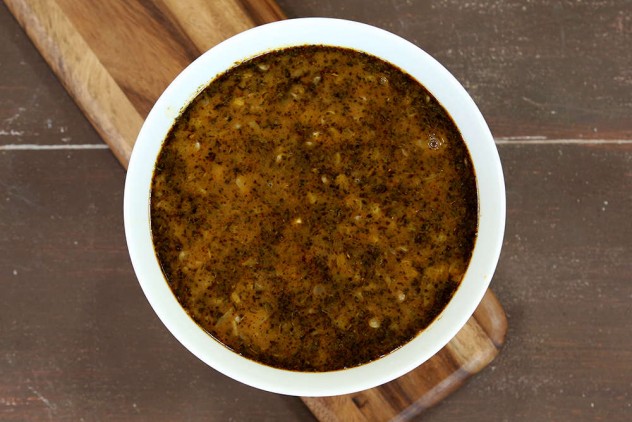Ayrı bir tavaya tereyağı ve zeytinyağını ekleyin. Yemeklik doğranmış soğanı ilave edin ve pembeleşinceye kadar kavurun. Ardından salça ve unu ekleyip kavurmaya devam edin. Kuru nane, tuz, karabiber ekleyip karıştırın ve çorbaya ilave edin, 1 taşım kaynatıp sıcak servis edin.