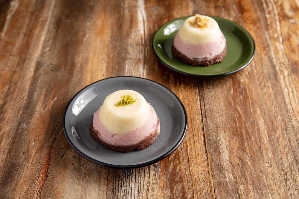 Küçük kalıplarınızın 3’te 1’ine sırasıyla sade irmik, vişneli irmik ve kakaolu irmikten doldurun. Önce oda sıcaklığında ardından buzdolabında soğumaya bırakın.