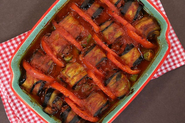 1 dilim patlıcana 1 adet köfte sarın.