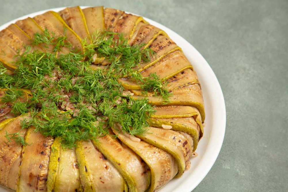 Üzerine defne yaprağını koyun ve kenarlardaki kabakları üzerine kapatın.