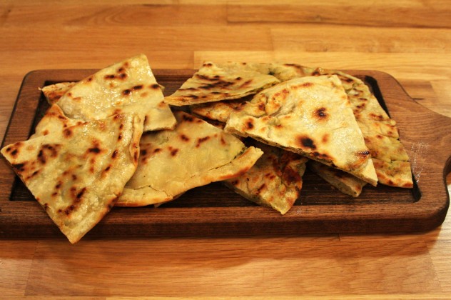 Tezgahı unlayın. Merdane yardımıyla hamuru açın. Peynir topunu hamurun ortasına koyun. Hamurun kenarlarını peynirin üzerinden birleştirin ve iyice kapatın. Birleşme yerini ters çevirerek tezgaha koyun ve merdaneyle hamuru ince bir bazlama şeklinde tekrar açın. Gerekirse açmak için un kullanın.