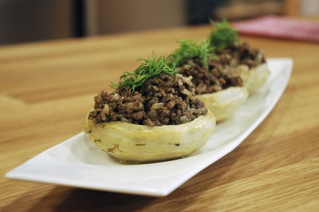 Bir tavada tereyağını eritin. Yemeklik doğradığınız soğanları tavaya alıp kavurun. Ardından kıymayı ilave edin ve kavurmaya devam edin.
